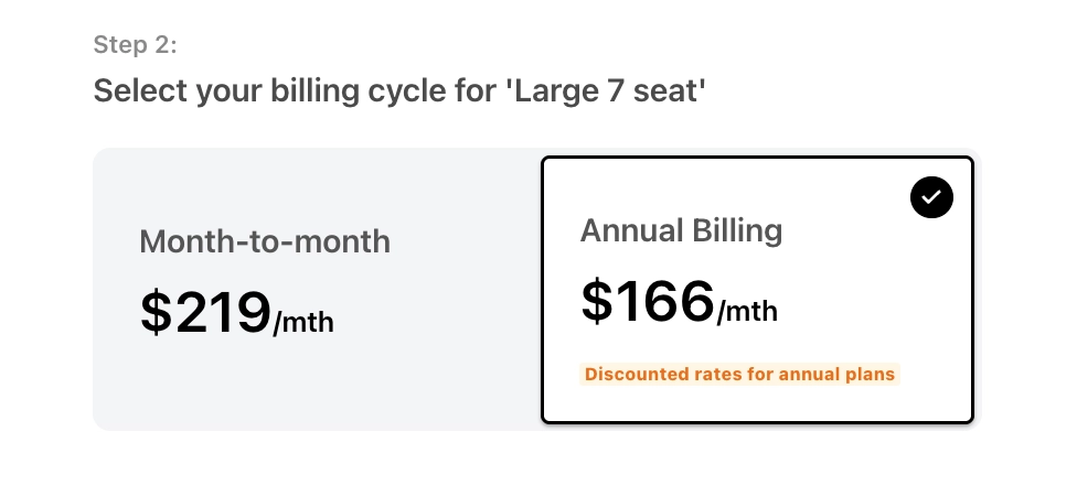 - Select your current billing cycle – Monthly or Annual.