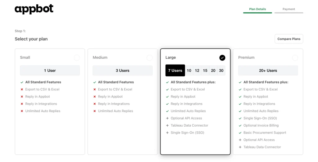 The Large and Premium plans include 100 sources. If you need to track more than 100 apps in Appbot, you can purchase additional sources.