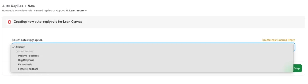 Choose the replies to use ChatGPT AI Replies or Canned Replies.